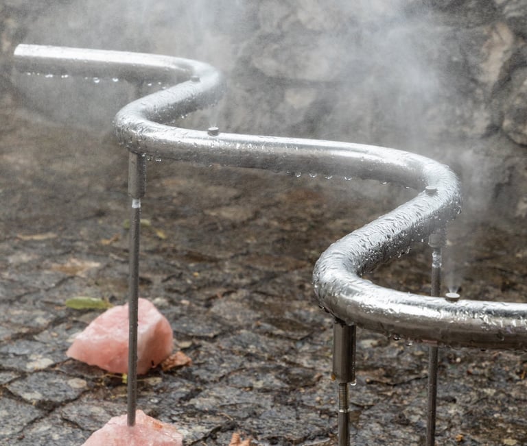 Materials: Stainless steel, pink quartz, high-pressure pump, water mist system
