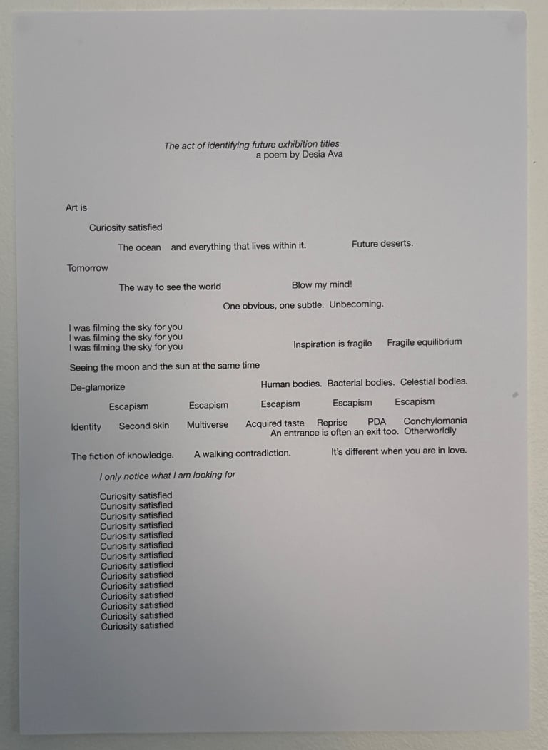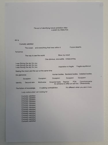 The act of identifying future exhibition titles: A poem by Desia Ava
